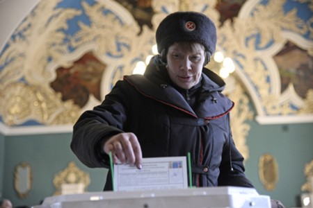 Голосование на выборах президента РФ на избирательном участке на Казанском вокзале