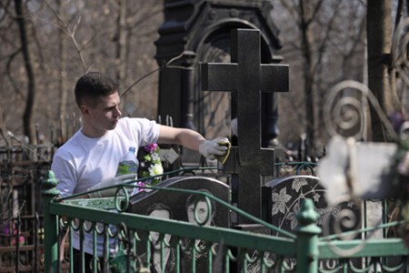 Весенняя уборка на территории московских кладбищ