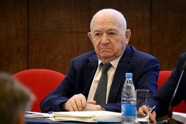 Исполняющий обязанности президента РФС Александр Алаев (в центре) во время очередной конференции Российского футбольного союза (РФС) в отеле Lotte Plaza.