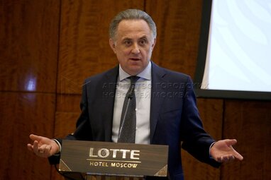 Заместитель председателя правительства РФ по вопросам строительства и регионального развития Виталий Мутко во время очередной конференции Российского футбольного союза (РФС) в отеле Lotte Plaza.