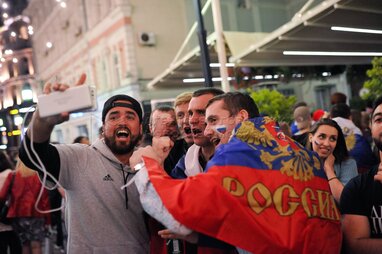 Просмотр болельщиками матча четвертьфинала ЧМ-2018 между сборными России и Хорватии