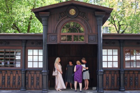 Отреставрированный чугунный павильон старейшей трамвайной остановки на севере столицы