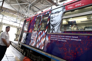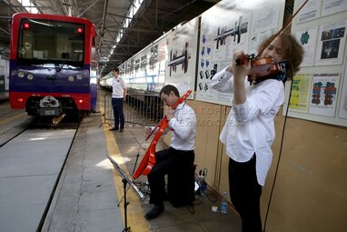 Запуск тематического поезда «Градоначальники Москвы», посвященного Дню города, на Кольцевой линии столичного метрополитена.