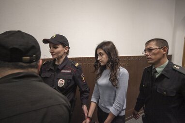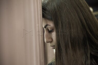 Задержанная по обвинению в убийстве отца 19-летняя Крестина Хачатурян во время рассмотрения в Басманном суде ходатайства следствия об изменении меры пресечения. Автор: Ведяшкин Сергей.