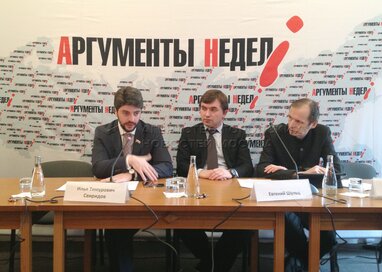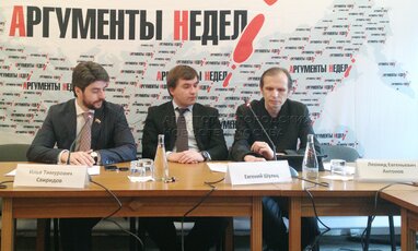 Муниципальный депутат Таганского района г. Москвы Илья Свиридов, общественный деятель и блогер Евгений Шульц, координатор общественного движения «Автомобилисты Москвы» Леонид Антонов (слева направо) на заседании круглого стола «Москвичи против платных парковок. Время действовать».