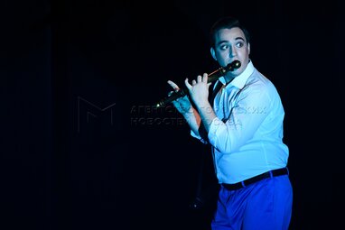 Актер Максим Перебейнос в роли Папагено в премьерном показе спектакля «Волшебная флейта» Вольфганга Амадея Моцарта в театре «Геликон-опера».