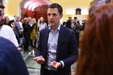 Режиссёр-постановщик спектакля «Волшебная флейта» Вольфганга Амадея Моцарта Илья Ильин на премьерном показе в театре «Геликон-опера».