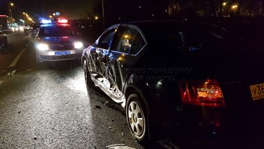 Последствия ДТП с участием шести машин по адресу: ул. Верхние Поля, д. 24.