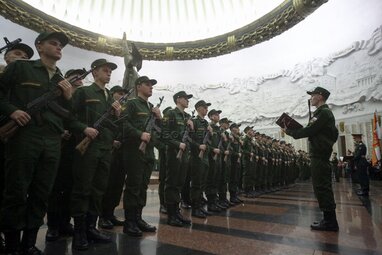 Принятие присяги новобранцами Преображенского полка в Зале Славы Музея Победы.