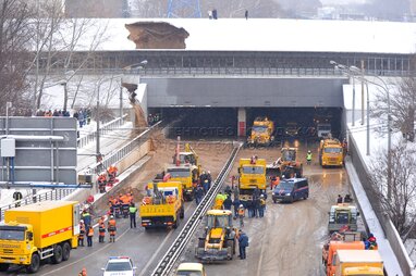 Ликвидация последствий разлива воды с сооружения Канала им. Москвы в районе Тушинского тоннеля