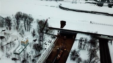 Вид с квадрокоптера на место ликвидации последствий разлива воды в районе Тушинского тоннеля. Источник фото: Мобильный репортер.
