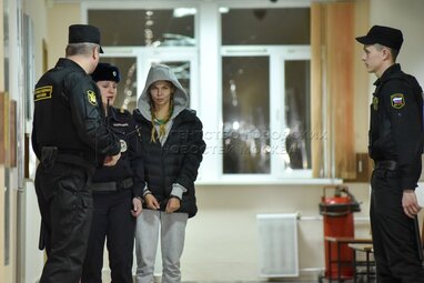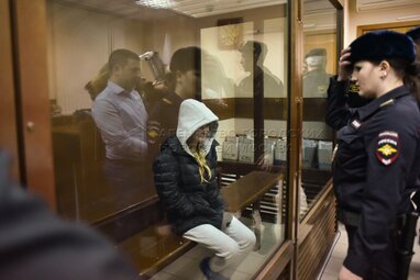 Гражданка Белоруссии Настя Рыбка (Анастасия Вашукевич), подозреваемая по делу о вовлечении в проституцию, на избрании меры пресечения в Нагатинском суде.