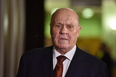 Руководитель департамента культуры Москвы Александр Кибовский перед началом церемонии прощания с народным артистом РСФСР Сергеем Юрским в Театре им. Моссовета.