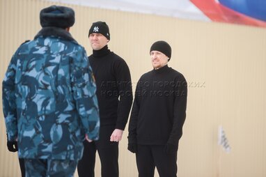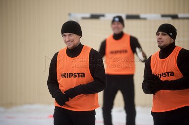 Полузащитник футбольного клуба «Краснодар» Павел Мамаев (слева), арестованный за хулиганство, на показательном матче в СИЗО «Бутырка».