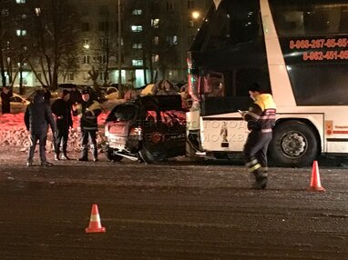 Последствия ДТП с участием автобуса и легкового автомобиля на юге Москвы