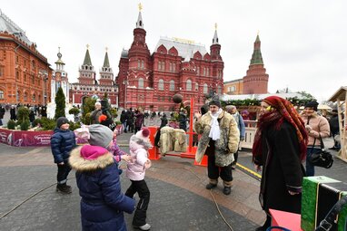 Работа площадки фестиваля «Крымская весна» на Манежной площади.