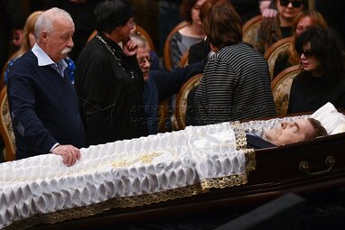 Народный артист России Александр Панкратов-Черный на прощании с народным артистом РФ Алексеем Булдаковым в Большом зале Дома кино.