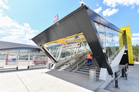 Вид с квадрокоптера на станцию «Ольховая» Сокольнической линии Московского метрополитена, открытую для пассажиров. Автор: Мобильный репортер.