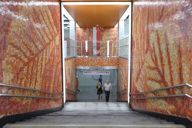 Cтанция «Ольховая» Сокольнической линии Московского метрополитена, открытая для пассажиров.