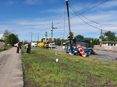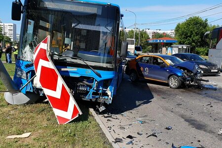 Последствия ДТП с участием автобуса и автомобиля каршеринга на юге Москвы.