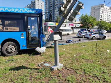 Последствия ДТП с участием автобуса и машины каршеринга в ЮАО