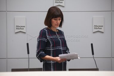 Начальник Отдела противоэпизоотических и лечебно-профилактических мероприятий Комитета ветеринарии города Москвы Анна Агафонова во время пресс-конференции «Бездомные животные Москвы. Проблемы и решения».