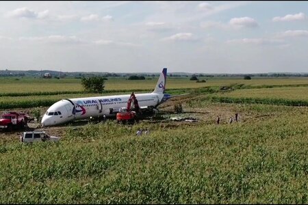 Демонтаж самолета Airbus А321 «Уральских авиалиний» на месте аварийной посадки в кукурузном поле в Раменском городском округе.