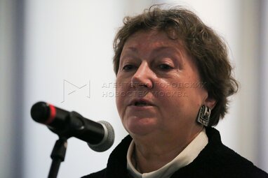 Научный консультант выставки, куратор коллекции А.Клячина Елена Царева на выставке «Восточный джаз / East West Jazz» в ГМИИ им. А.Пушкина.