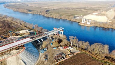 Вид с квадрокоптера на ход строительства четвертого пускового комплекса Центральной кольцевой автодороги (ЦКАД).