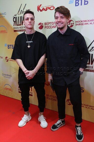 Рустам Агаев (слева) и Алексей Гречаник (дуэт Alex&Rus) на премьере фильма «Лев Яшин. Вратарь моей мечты» в кинотеатре «Каро 11 Октябрь».