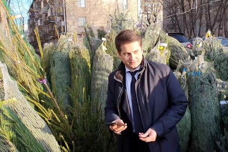 Руководитель департамента торговли и услуг Москвы Алексей Немерюк во время начала работы елочных базаров в Москве.