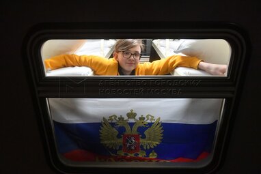 Отправление первого двухэтажного поезда «Таврия» по новому маршруту Москва - Симферополь с Казанского вокзала.