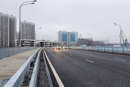 Движение по новому автомобильному мосту через Кожуховский затон
