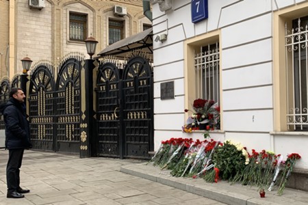 Цветы у посольства Ирана в Москве
