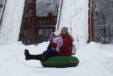 Отдых горожан на тюбинговых горках в Измайловском парке.