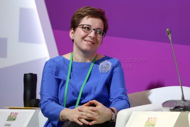 Эксперт в пациенториентированности и медицинской коммуникации, исполнительный директор консалтинговой компании «МАС-менеджмент» Анна Хасина во время круглого стола «Как сделать врача пациентоориентированным» в рамках ассамблеи «Здоровая Москва» на ВДНХ.