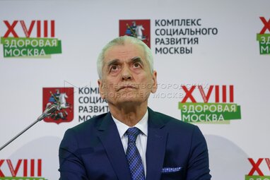 Начальник Управления научного обеспечения санитарно-эпидемиологического благополучия населения и международной деятельности Роспотребнадзора Вячеслав Смоленский во время открытия XVIII ассамблеи «Здоровая Москва» на ВДНХ.