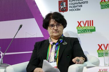 Главный внештатный специалист по терапии и общей врачебной практике Минздрава России Оксана Драпкина во время круглого стола «Эпидемиология большого города» в рамках ассамблеи «Здоровая Москва» на ВДНХ.