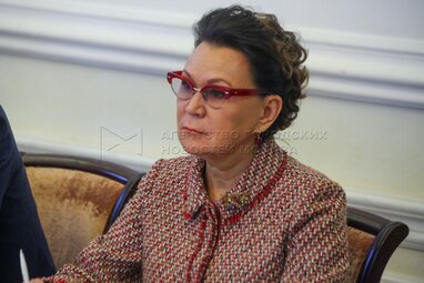 Куратор международных музейных выставочных проектов и генеральный директор Государственной Третьяковской галереи Зельфира Трегулова на заседании рабочей группы по подготовке поправок в Конституцию РФ в Общественной палате РФ.