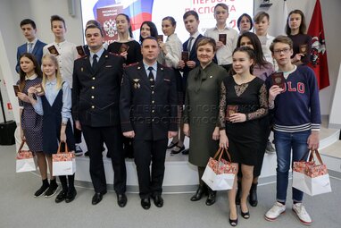 Торжественная церемония вручения российских паспортов детям, достигшим 14-летнего возраста, во дворце госуслуг «Мои документы» на ВДНХ.