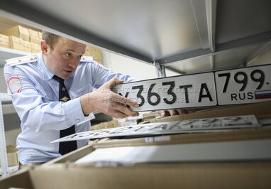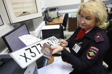 Выдача автомобильных номеров сотрудниками ГИБДД