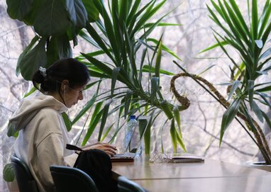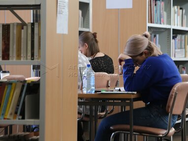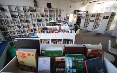 Актриса Жанна Воробьева в библиотеке иностранной литературы.