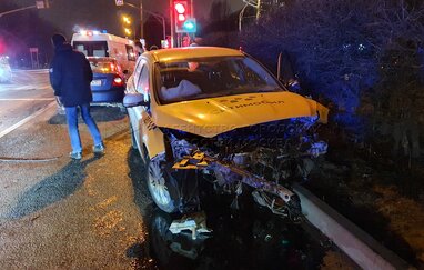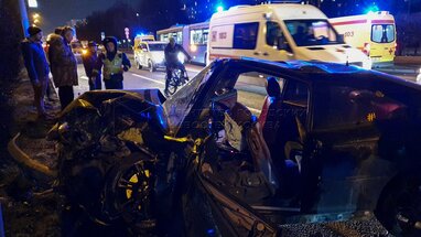 Последствия ДТП с участием BMW и автомобиля такси на юге Москвы