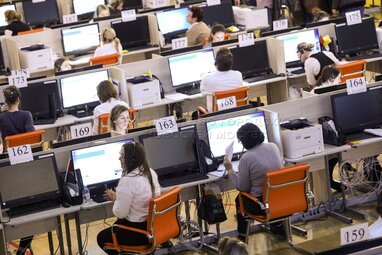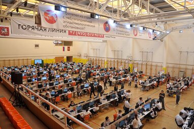 Call-центр Оперативного штаба столичного департамента здравоохранения по контролю и мониторингу ситуации с коронавирусом, расположенный в здании школы №1409.