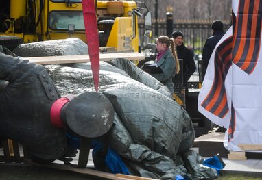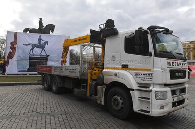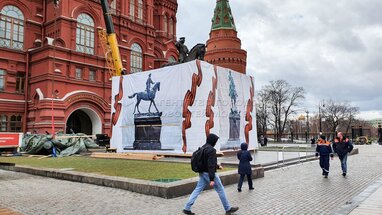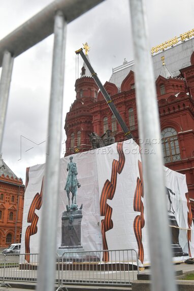 Установка нового памятника маршалу Георгию Жукову на Манежной площади в Москве.