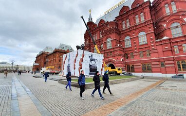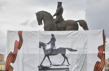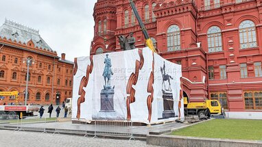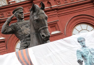 Установка нового памятника маршалу Георгию Жукову на Манежной площади в Москве