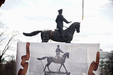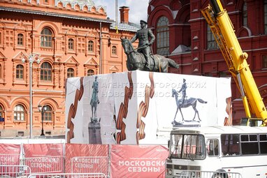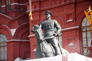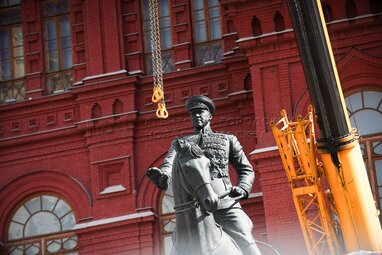 Отреставрированный памятник маршалу Жукову установили на Манежной площади