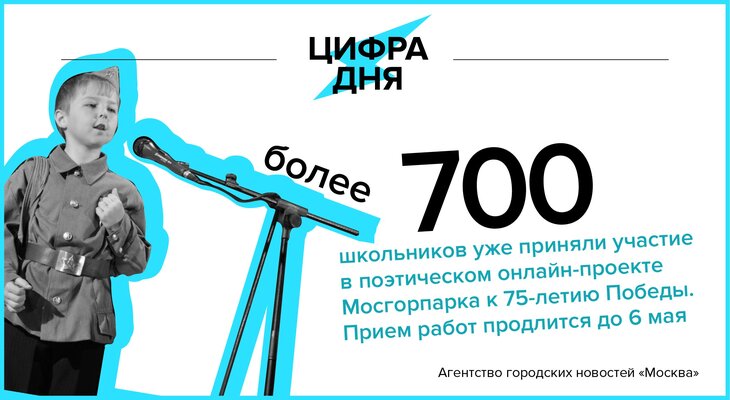 Цифра дня 29 апреля: Более 700 школьников приняли участие в онлайн-проекте Мосгорпарка к 75-летию Победы.
