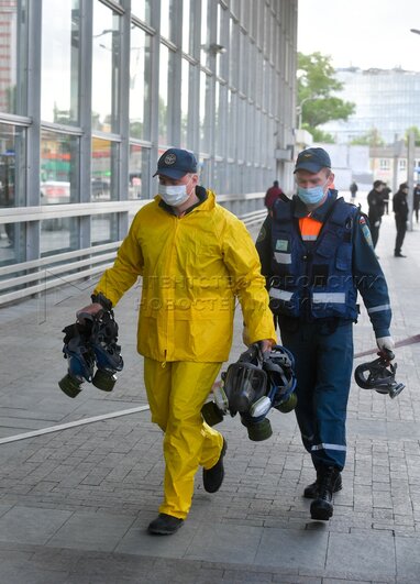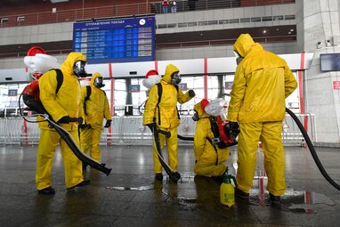 Дезинфекция Курского вокзала сотрудниками специального отряда МЧС России «Лидер»