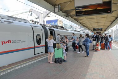 Отправление поезда «Сапсан» в Санкт Петербург с Ленинградского вокзала столицы